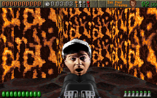 If you type in ROTT DOPEFISH to launch the game (instead of just typing ROTT), the first screen you see is a head swirling around the screen, and lots of belching. The head is "Scott's Mystical Head" and the belching is courtesy of Joe Siegler. Also, the level names are changed, there is burping as the levels loads, and a few other weird things happen.